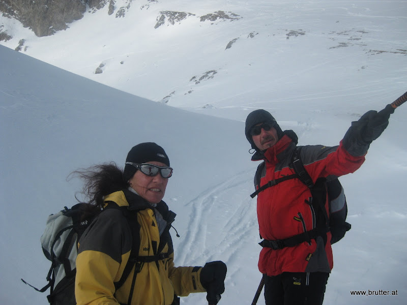 Nachdem wir den „einzigen“ Parkplatz beim Rechenhof in Rum ergattern konnten, stiegen wir über einen Abkürzungssteig auf die Rumer Alm auf. Die Arzler Reise präsentierte sich hart und – vor allem – windig. An der Arzler Scharte angelangt, beschlossen wir aufgrund des heftigen Windes (am Patscherkofel wurden 110 km/h gemessen) das ursprüngliche Ziel, die Rumerspitze sein zu lassen. Stattdessen fuhren wir bis fast zur Pfeishütte ab und querten rauf zum Stempeljoch. Durch den heftigen Wind wurde der Schnee stark verfrachtet und tatsächlilch zwang mich ein lautes Setzungsgeräusch. einen Hang fluchtartig zu verlassen. Gottseidank haben wir ausreichende Entlastungsabstände eingehalten! Die Rinne vom Stempeljoch hinunter ins Isstal war noch pulvrig, die Rodelbahn im Halltal bis zum Parkplatz befahrbar.