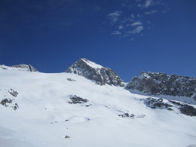 Pünktlich um 6:00 Start mit dem Fahrrad von der Bärenbadalm. Bis gut 200 Meter nach dem Tunnel oberhalb der Dammkrone war die Strasse komplett aper, anschließend dafür ganz gute Verhältnisse. Gegen halb zehn stand ich schon am Gipfel, wo mich allerdings eine steife Brise schnell wieder vertrieb.